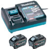 Startset XGT 40Vmax Makita 191L77-9 bestaat uit 2 accu’s en een compatibele lader met bescherming om de cellen te beschermen tegen overbelasting.